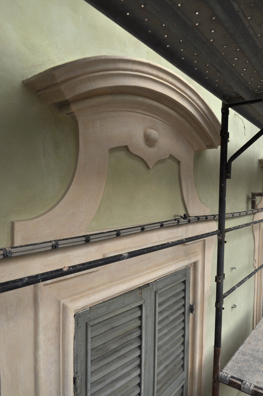 Un approfondito studio storico preliminare corredato di ricerche d’archivio e saggi stratigrafici unito alla riscoperta delle tecniche pittoriche storiche emiliane, ha orientato tutte le scelte progettuali restituendo alla facciata i colori caratteristici dell’epoca, come il cosiddetto “colore aria”, il verde brentonico e tinte color avorio.